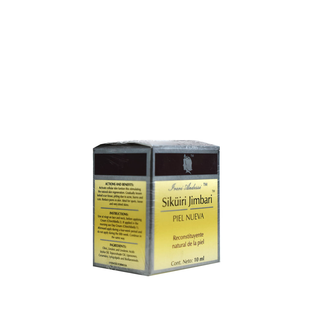 El Aceite para Piel Nueva Sikuiri Jimbari de 10 ml ayuda a activar las funciones celulares de la piel, estimulando su regeneración natural. Perfecto para reducir cicatrices y marcas causadas por acné, varicela y quemaduras, este aceite favorece una piel más renovada, suave y uniforme. Incorporarlo a tu rutina diaria es un paso esencial para recuperar la salud y luminosidad de tu piel.